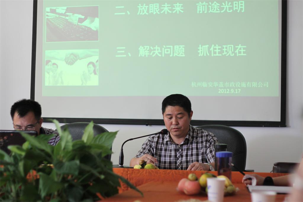 临安华盖市政设施有限公司、杭州临安远邦输送机械有限公司注重企业文化,重视员工意见和建议,在公司例行会议上各位员工献计献策,畅所欲言。